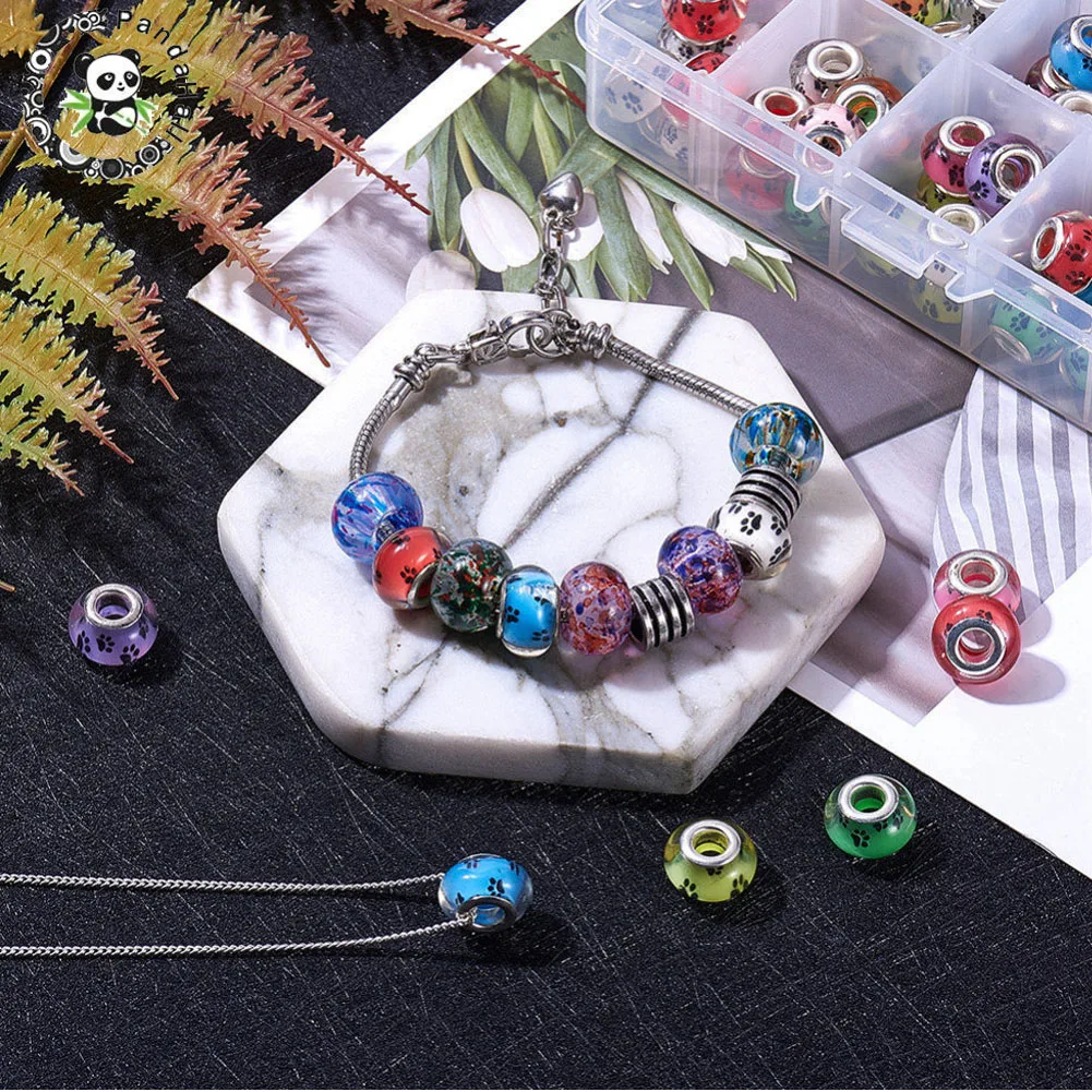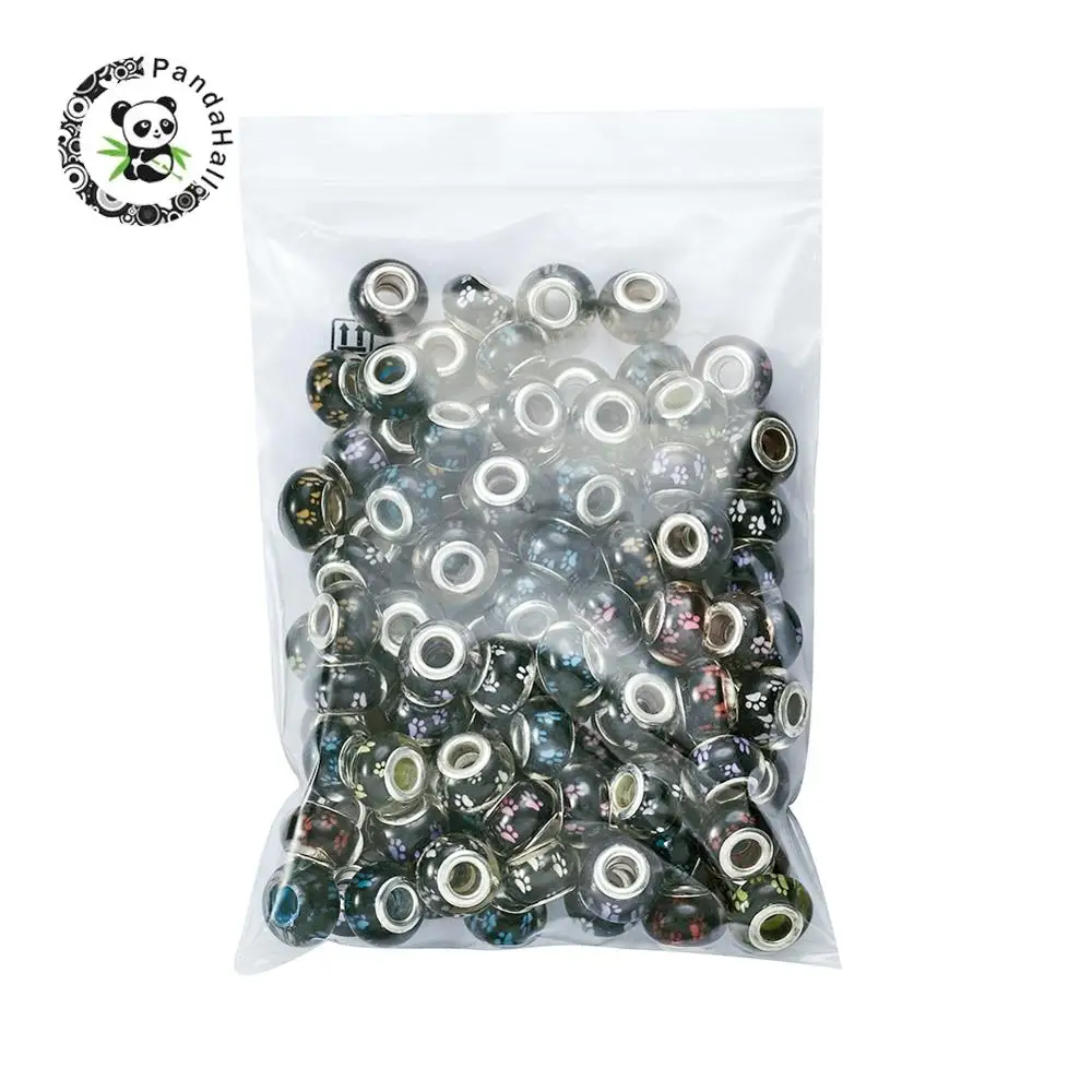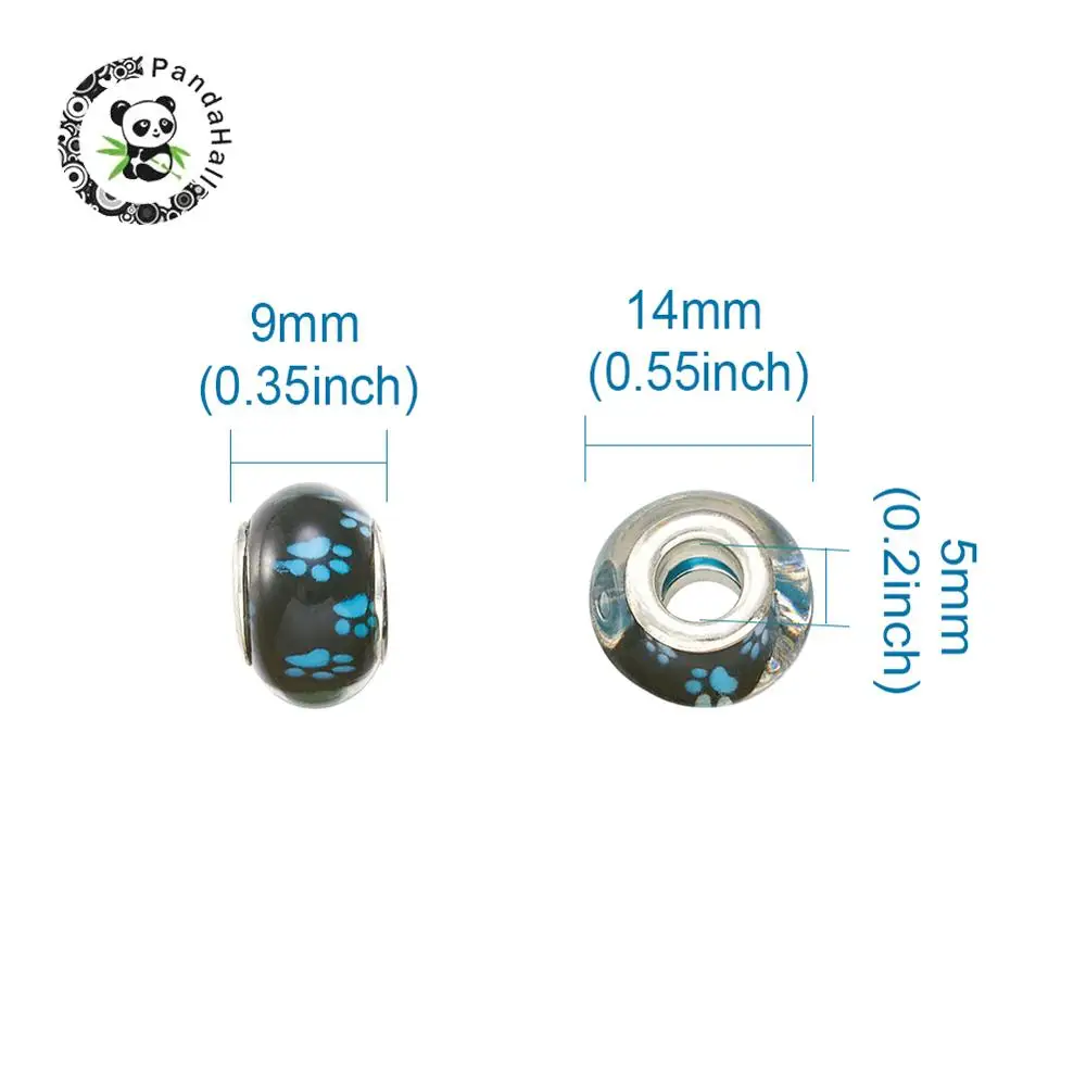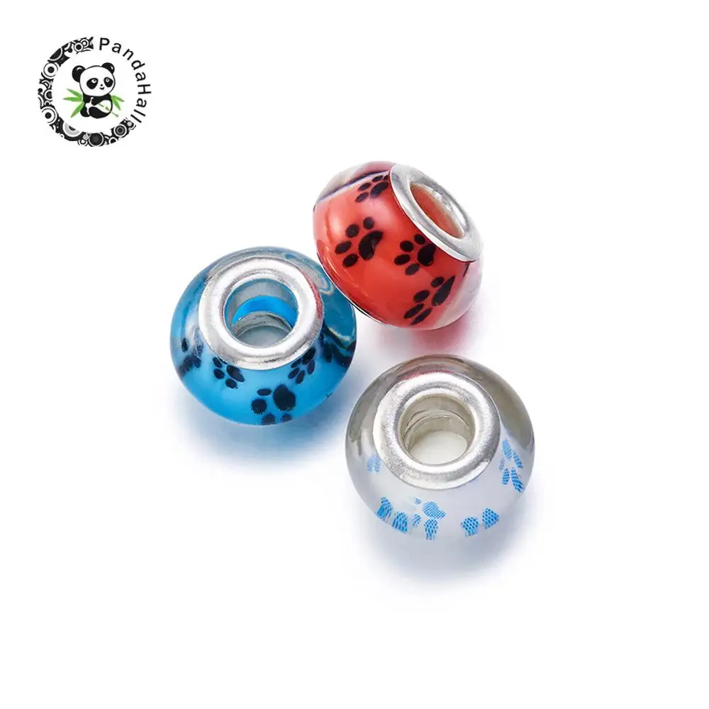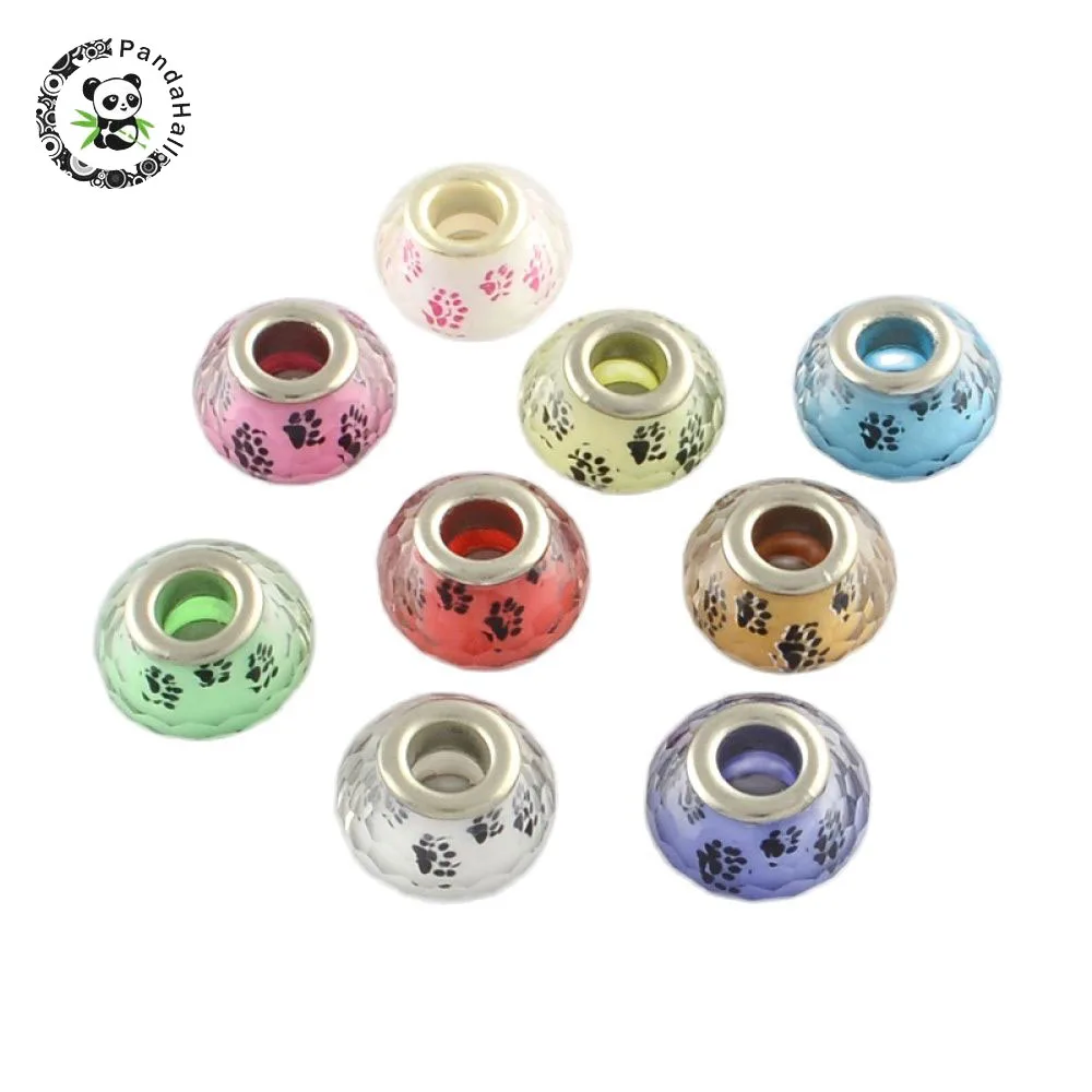 100 шт. Смешанные черные белые большие отверстия собачья лапа Узор Акриловые Европейские Бусины с латунными двойными сердечниками Rondelle 14x9 мм F80
