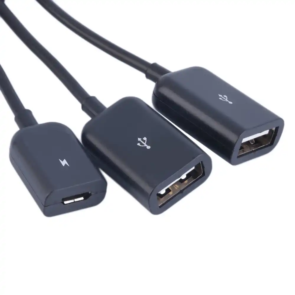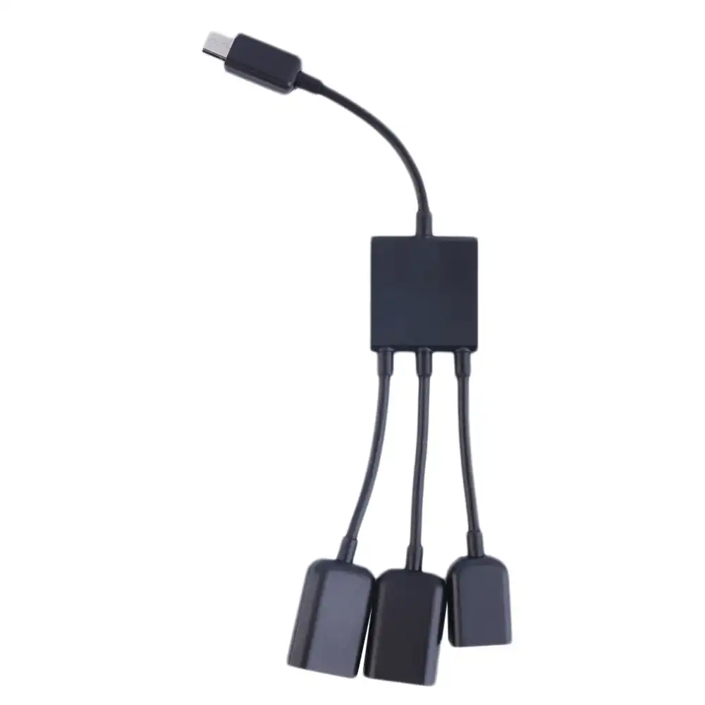 3 в 1 микро usb-хаб штекер Женский двойной USB 2,0 адаптер хоста OTG кабель конвертер удлинитель универсальный для мобильных телефонов черный