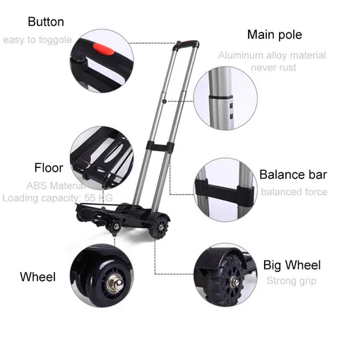 Автомобильная складная тележка для багажа из алюминиевого сплава, портативный дорожный трейлер, бытовая тележка для багажа, тележка для покупок