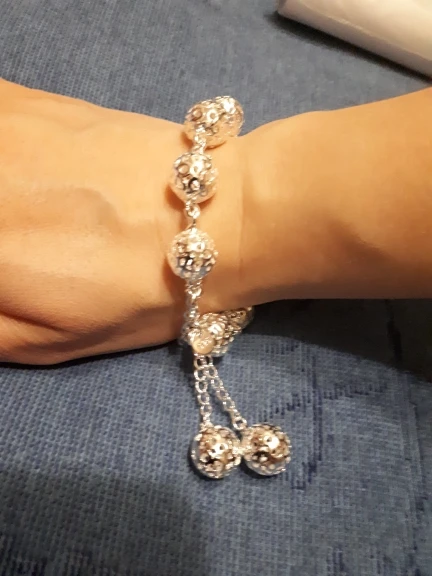 Очень красивый браслет, лёгкий, необычный. Шарики, которые болтаются не раздражают. Очень понравилось.