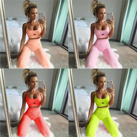 Комплект спортивный женский для йоги, Быстросохнущий бюстгальтер для бега, эластичные леггинсы розового цвета с ажурным вырезом для фитнеса, одежда для спортивного зала #32855052842