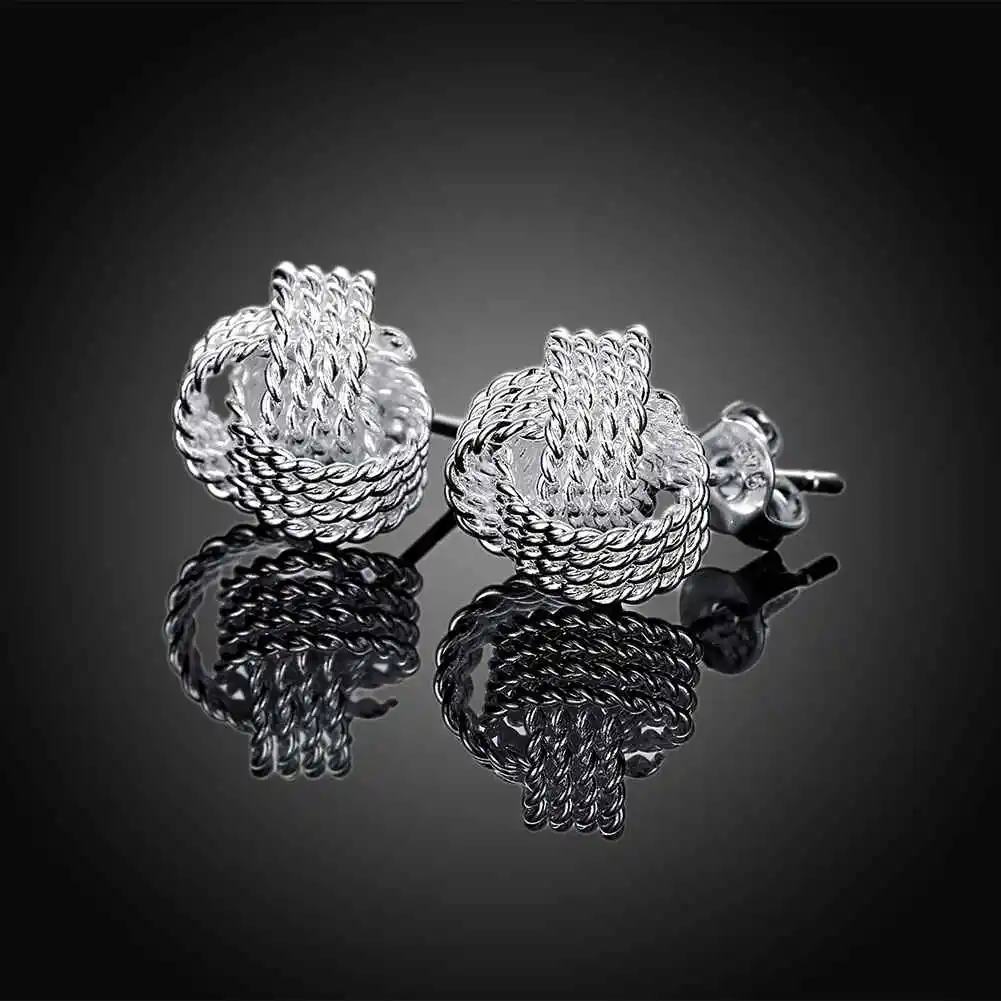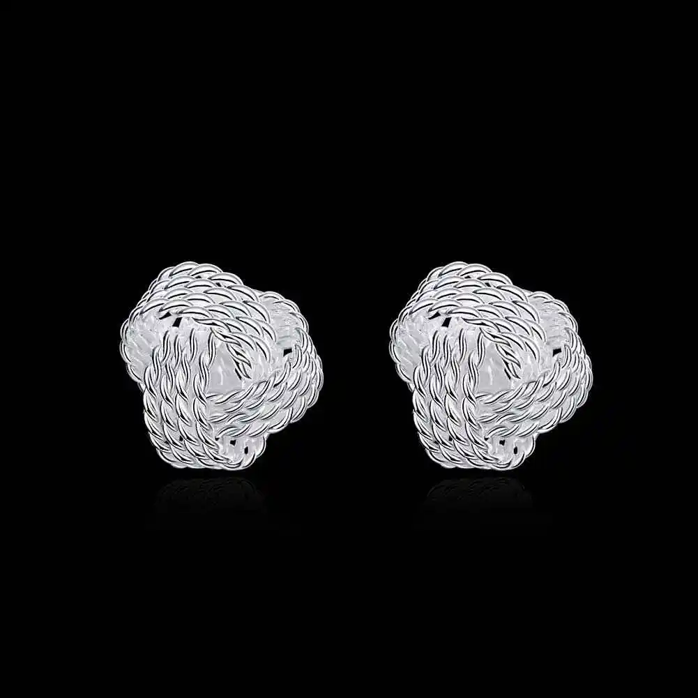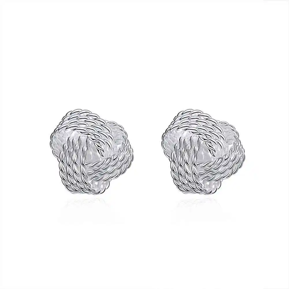 Летний стиль серебро новые модные украшения милые 925 серьги для женщин Теннис Чистая плетеные серьги-гвоздики серьги манжеты оптовая продажа #857554115