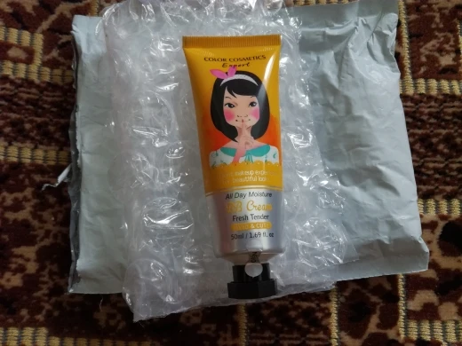 Заказ был в пути оооочень долго. Месяца 2. Я уже потеряла надежду получить его. Но всё таки пришел. Теперь по делу. Тюбик большой, хватит на долго. Когда выдавила крем, удивилась цвет очень персиковый, аромат тоже персиковый, я подумала как же он подстроится под цвет моей кожи. У меня очень светлая кожа, есть следы постакне, которые трудно замаскировать без консилера. Но этот крем не только замечательно подстроился под цвет моей кожи, но и перекрыл шрамы от прыщей. По консистенции на ВВ-крем не похож, плотный. Нужна всего одна капелька, которую я смешиваю с праймером и наношу с помощью кисти. Крем очень эластичный, хорошо растягивается, слегка полосит, но не критично. Достаточно стойкий. Итог, что мы имеем за 183 рубля: приятный, нерезкий запах, цвет легко подстраивается, медленно расходуется, имеет плотное покрытие, другие текстуры (пудры, хайлайтеры, румяна) хорошо ложатся на него, внушительный тюбик. Однозначно рекомендую.