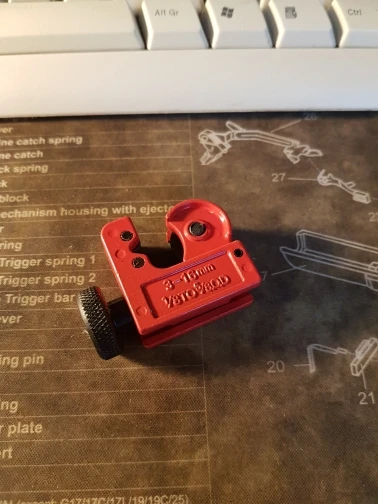 Отличный мини резачок) Качество среза на фото) Советую перебрать резак: выбить штифты, слегка полирнуть ролики (дабы избежать оставления следов от них на поверхности трубок, которые будете резать), добавить смазки под ролики, под диск и на резьбу подающего винта, убрать заусенцы и остатки краски. Работать будет плавно и в удовольствие. Берите отличная штука)