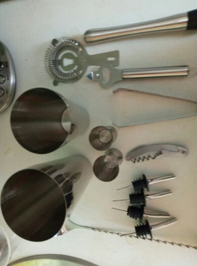 Нормальный набор, сделан конечно не из супер металла, но нам хватит. А нож бармена даже лучше, чем нож, который я в городе покупала. Всё части на месте, упаковано хорошо.
